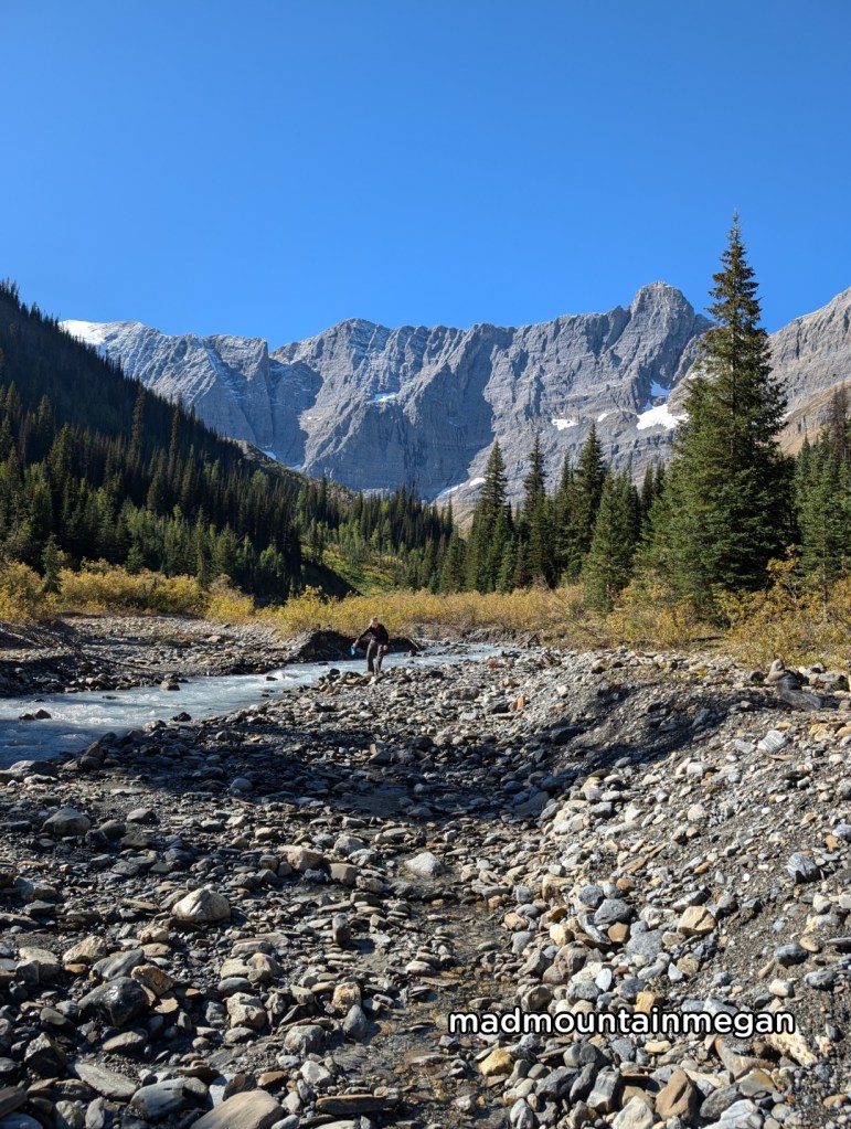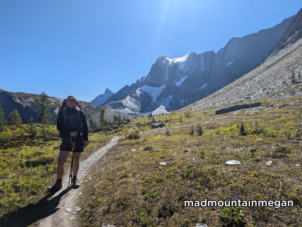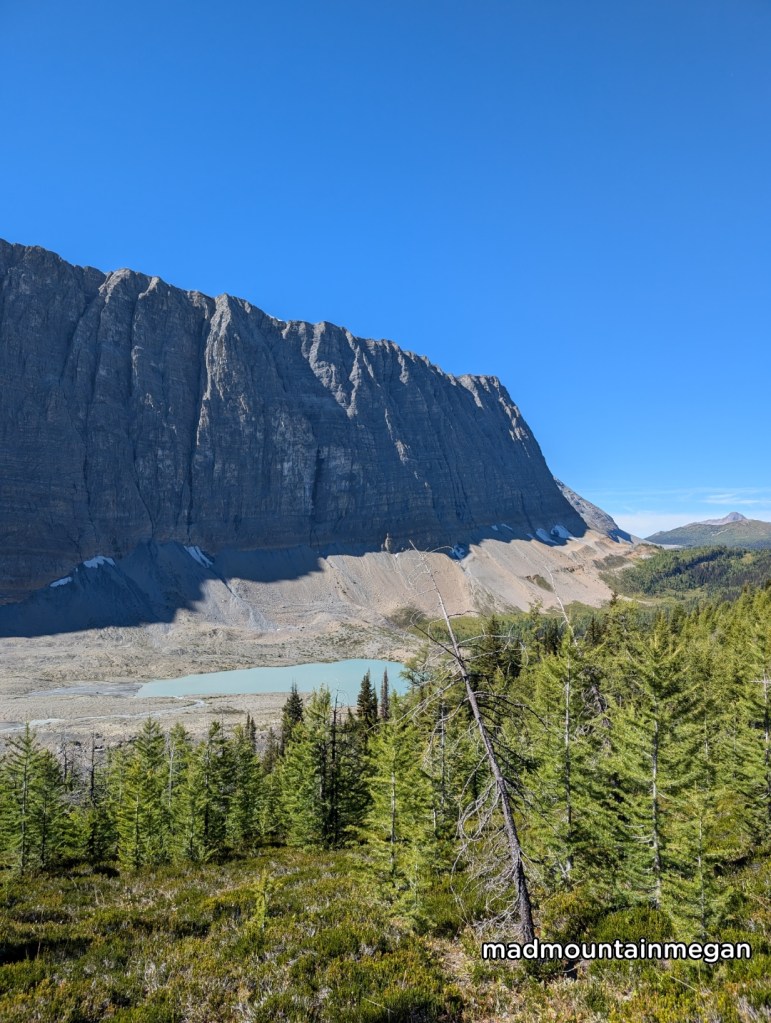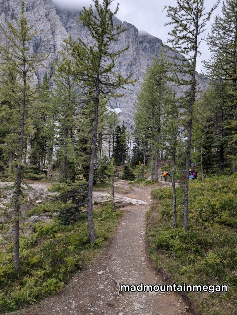 The hike starts as a flat walk through the forest, after crossing the river a couple times you are met with steady switchbacks. The trail levels off as you head around the mountains to the back of the valley. Traveling through the dead forest is exposed, there are a few places to fill water if needed. The last kilometer you hike up steep switch backs through the forest over the head wall. You know you are getting close when you start to see larches.