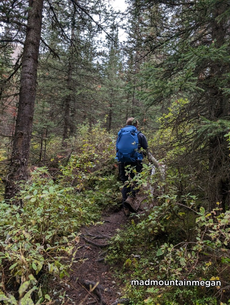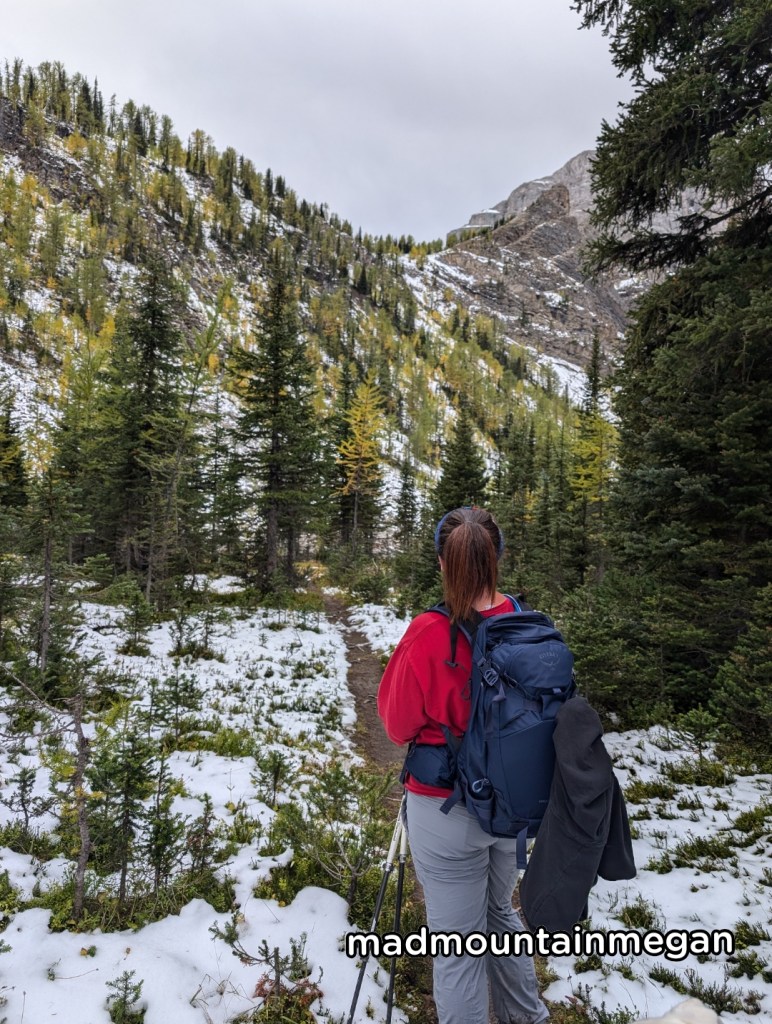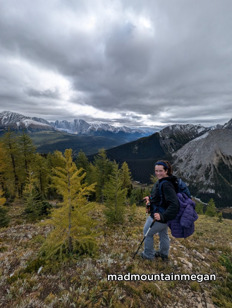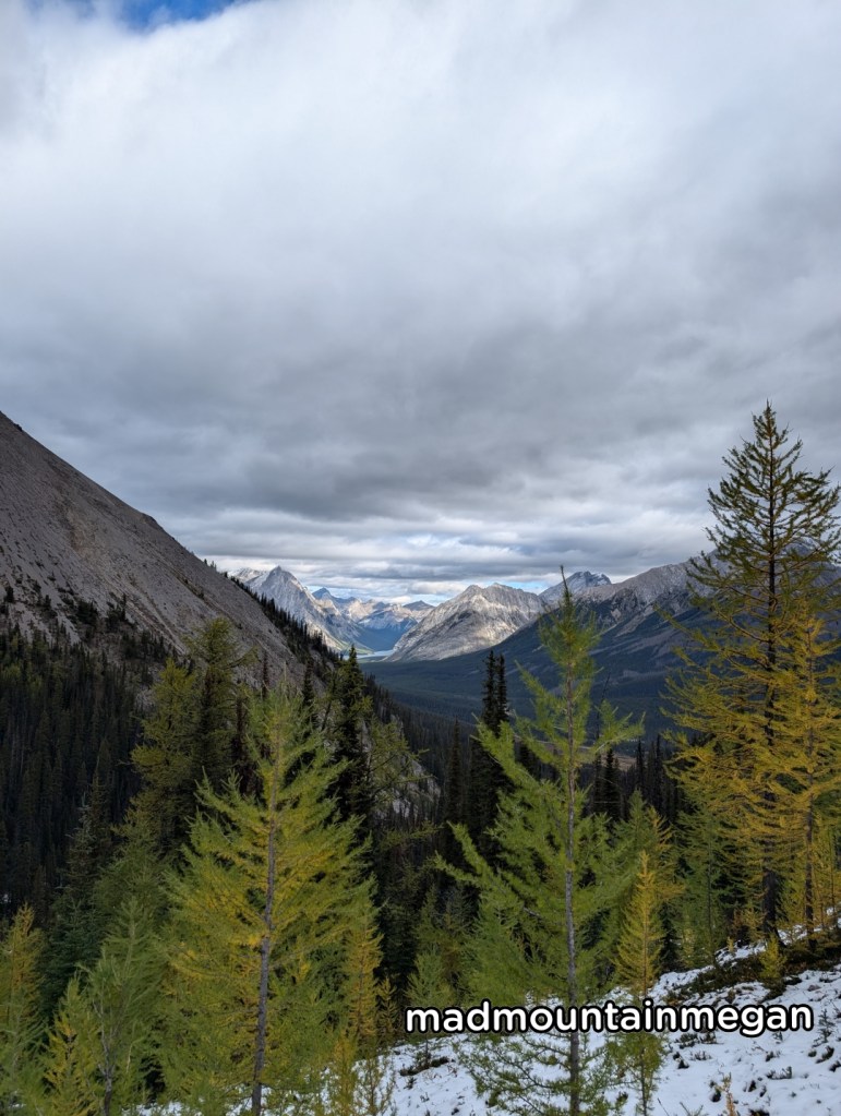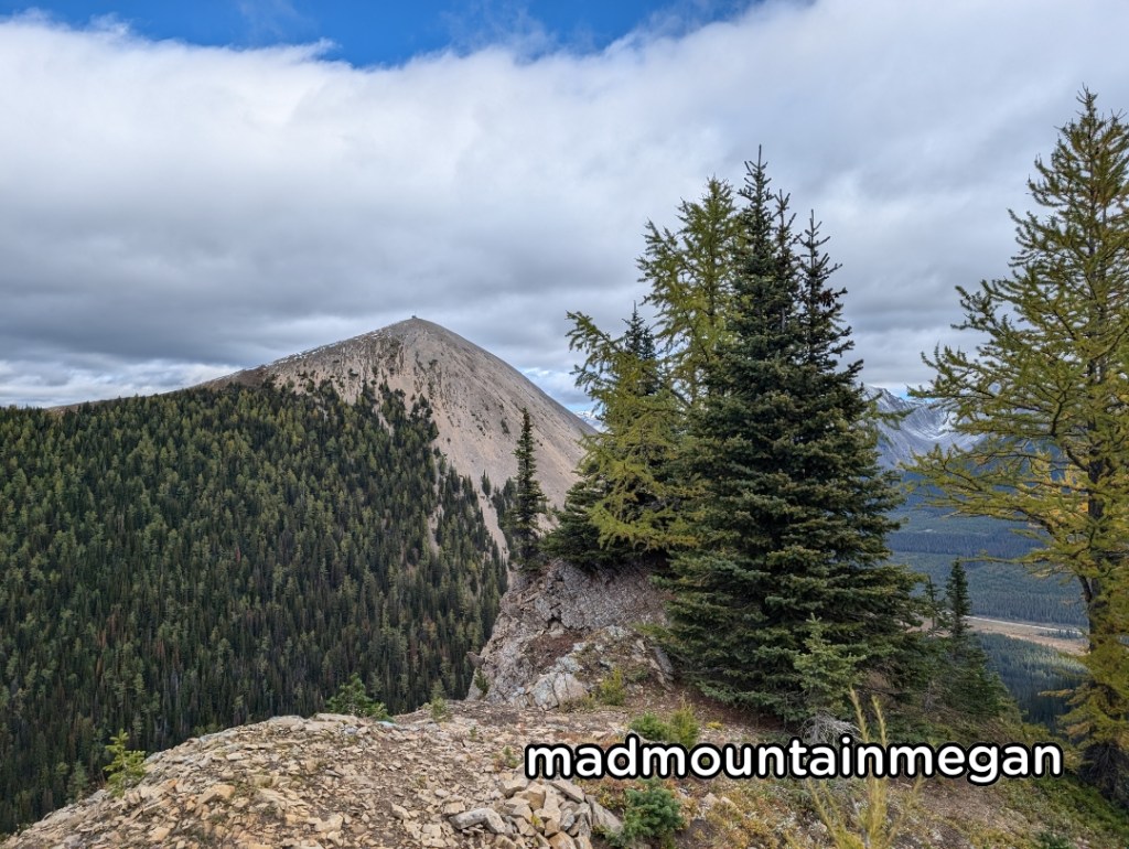 Prior to the lake there is a small path to the left, this path takes you up Tryst Ridge. It is steep but the path is easy to follow. Once cresting the ridge turn right on a well beaten path to follow the ridge. Through the larch forest you have views of Tent Ridge, Commonwealth Valley and the Spray Valley. We walked up to where there were no more trees, however it looks like you could scramble the small peak in front if you want.