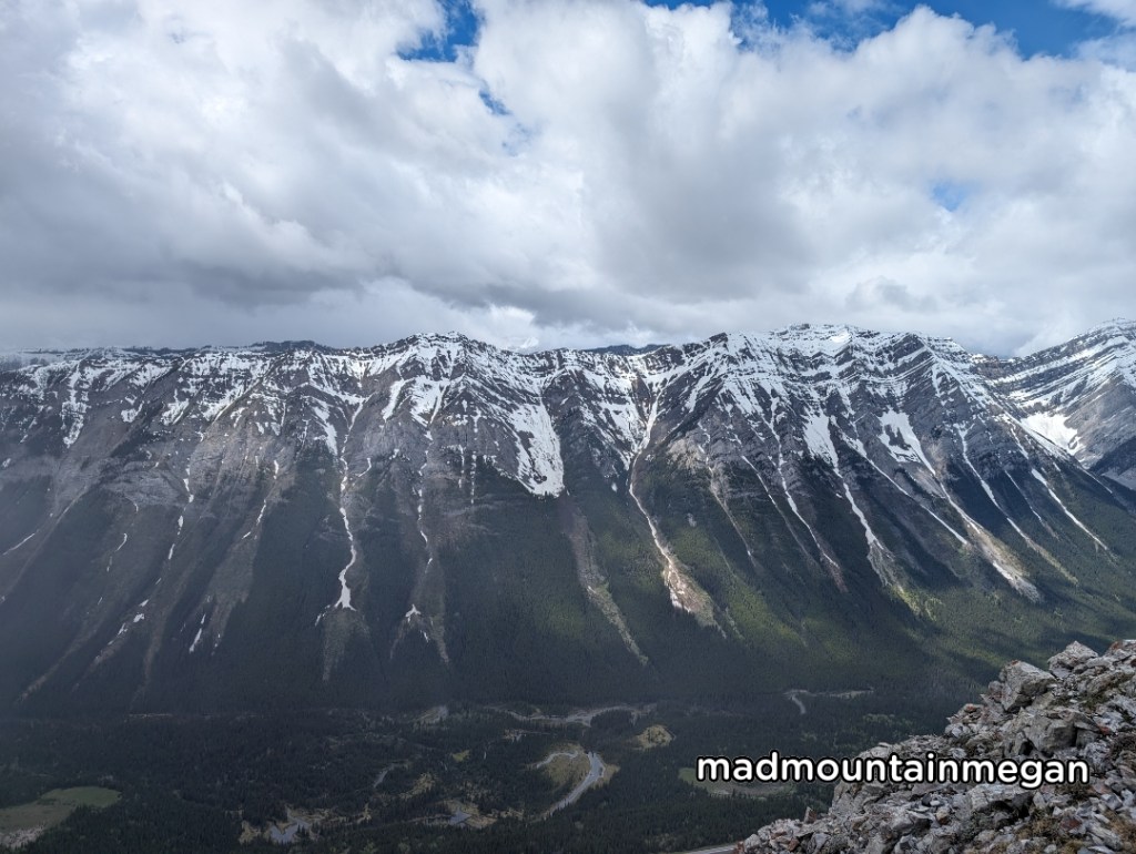 This hike is about 1hour and 15 min drive from Calgary. This hike appears short and easy but it is actually extremely steep. The trail is nice for most of the time with some sections being slippery with loose rocks. Despite its location this hike keeps its snow for a long time and should be attempted later in the spring/ summer. You get views nearly the whole hike, and at the top you can see the surrounding mountains and the Highway 40 valley area.