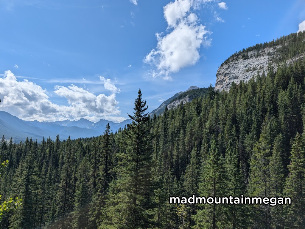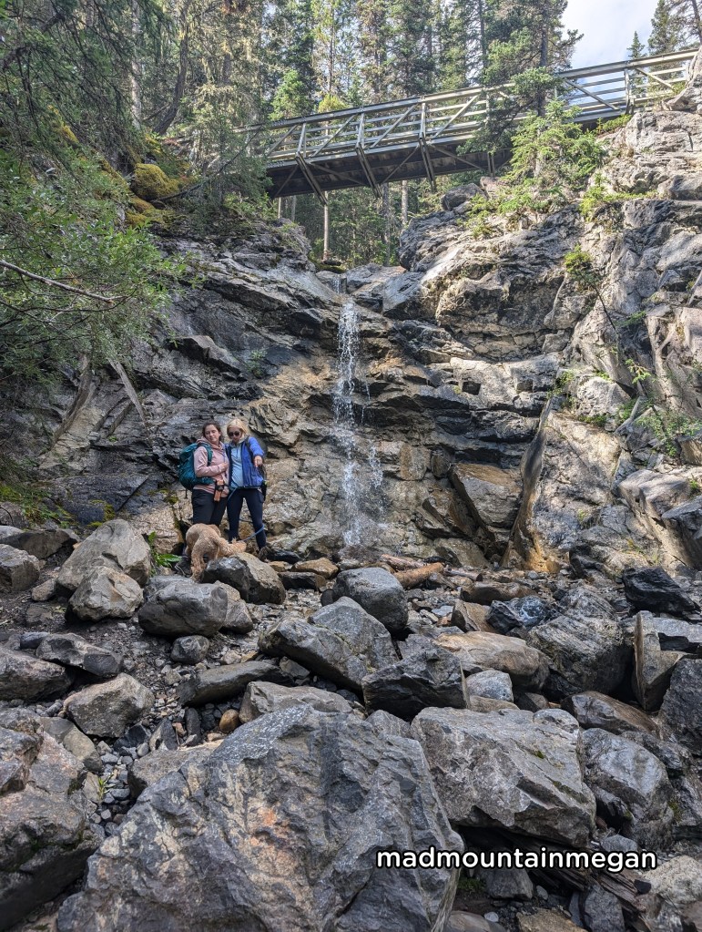 This is a short and sweet hike, that is flat and easy. The waterfall at this time of year was really nothing much and maybe even disappears on dry years. We really needed something easy and short for this day. The hike is technically apart of the Jewell Pass hike and the waterfall is not marked, I have just seen it there previously. You do get lovely views of Barrier Lake as you make your way to the Jewell pass hike.